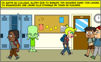 Fily, l'héroïne martienne d'un conte, s'est perdue sur Terre. Aide-la à retourner chez elle en retrouvant son livre dans les rayons du CDI.