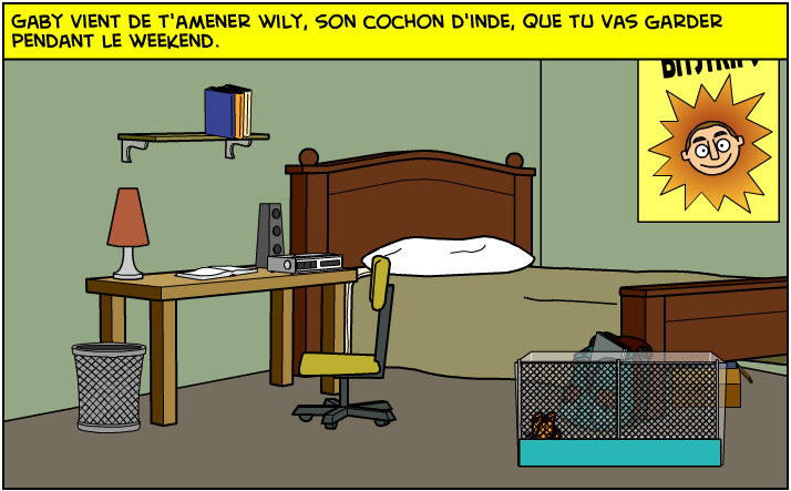 Tu gardes ce weekend Wily, un petit cochon d'inde. Gaby, son propriétaire tête-en-l'air, a oublié de t'expliquer ce qu'il mangeait. Fais des recherches pour t'informer sur son alimentation.